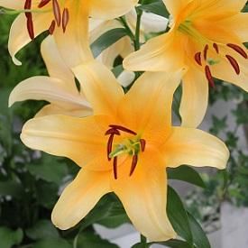 ・オリエンタルユリ 橙色 鮮明で光沢があるオレンジの花もちのいい品種