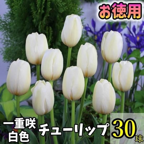 ・一重咲 白色 30球入 ・開花時期:4月上旬〜4月下旬 ・草丈:40cm〜 ※写真はイメージです。印刷の具合で花色が写真と若干違う場合があります。 ※掲載種苗は品種、栽培管理、天候、その他の条件により結果が異なる場合があります。 ※掲載の球根は観賞用です。絶対に食べないで下さい。